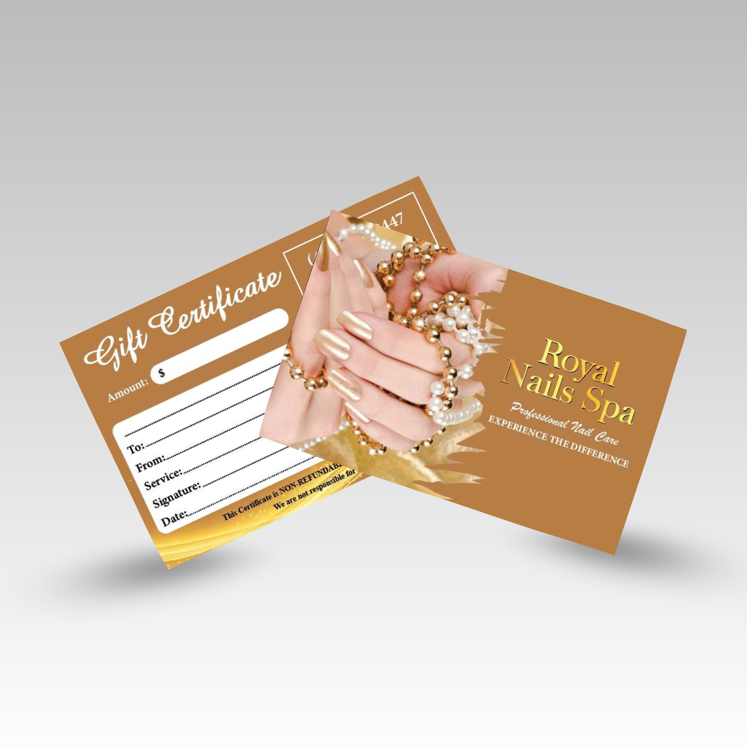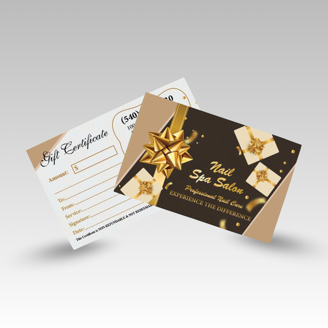 Gift certificates are a great marketing tool and an easy way to promote your business, organization, or cause. We offer over a dozen fully customizable gift card design template options for you to choose from. Choose from a restaurant gift card template, a template for a birthday or graduation, nails salon and more.